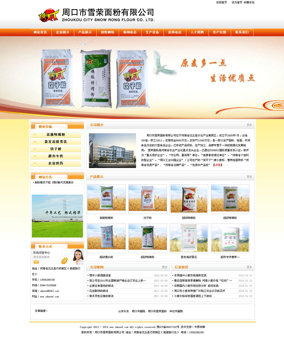 案例介紹:周口市雪榮面粉有限公司位于河南省沈丘縣沙北產(chǎn)業(yè)集聚區(qū),成立于2005年7月,占地300畝,職工320人,注冊(cè)資金6600萬(wàn)元,總資產(chǎn)21600萬(wàn)元,是一家以生產(chǎn)面粉、掛面、休閑食品為主的大型食品企業(yè),已形成產(chǎn)品研發(fā)、生產(chǎn)加工、品牌專營(yíng)于一體的規(guī);l(fā)展格局。