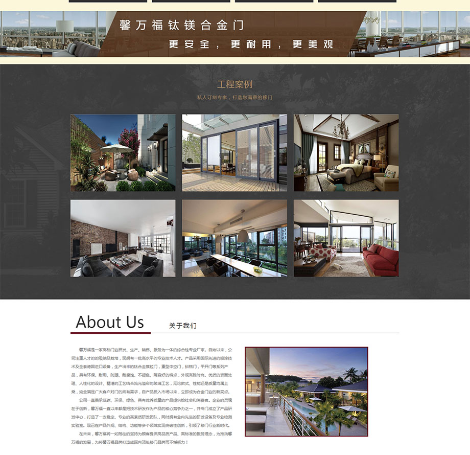 案例介紹:馨萬福是一家高檔門業(yè)研發(fā)、生產(chǎn)、銷售、服務(wù)為一體的綜合性專業(yè)廠家。自始以來,公司注重人才的的吸納及栽培,現(xiàn)擁有一批高水平的專業(yè)技術(shù)人才。產(chǎn)品采用國際先進(jìn)的噴涂技術(shù)及全套德國進(jìn)口設(shè)備,生產(chǎn)出來的鈦合金推拉門,重型中空們,拼格門,平開門等系列產(chǎn)品,具有環(huán)保、耐用、防潮、耐腐蝕、不褪色、隔音好的特點,外觀高雅時尚。優(yōu)質(zhì)的表面處理、人性化的設(shè)計、精湛的工藝結(jié)合流光溢彩的玻璃工藝,無論款式、性能還是質(zhì)量均屬上乘,完全滿足廣大客戶對門的所有需求,自產(chǎn)品投入市場以來,立即成為合金門業(yè)的新亮點